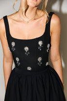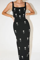 Pair with strappy metallic heels and a sleek clutch. Style with a slicked-back bun and minimal jewelry to let the crystal details shine.