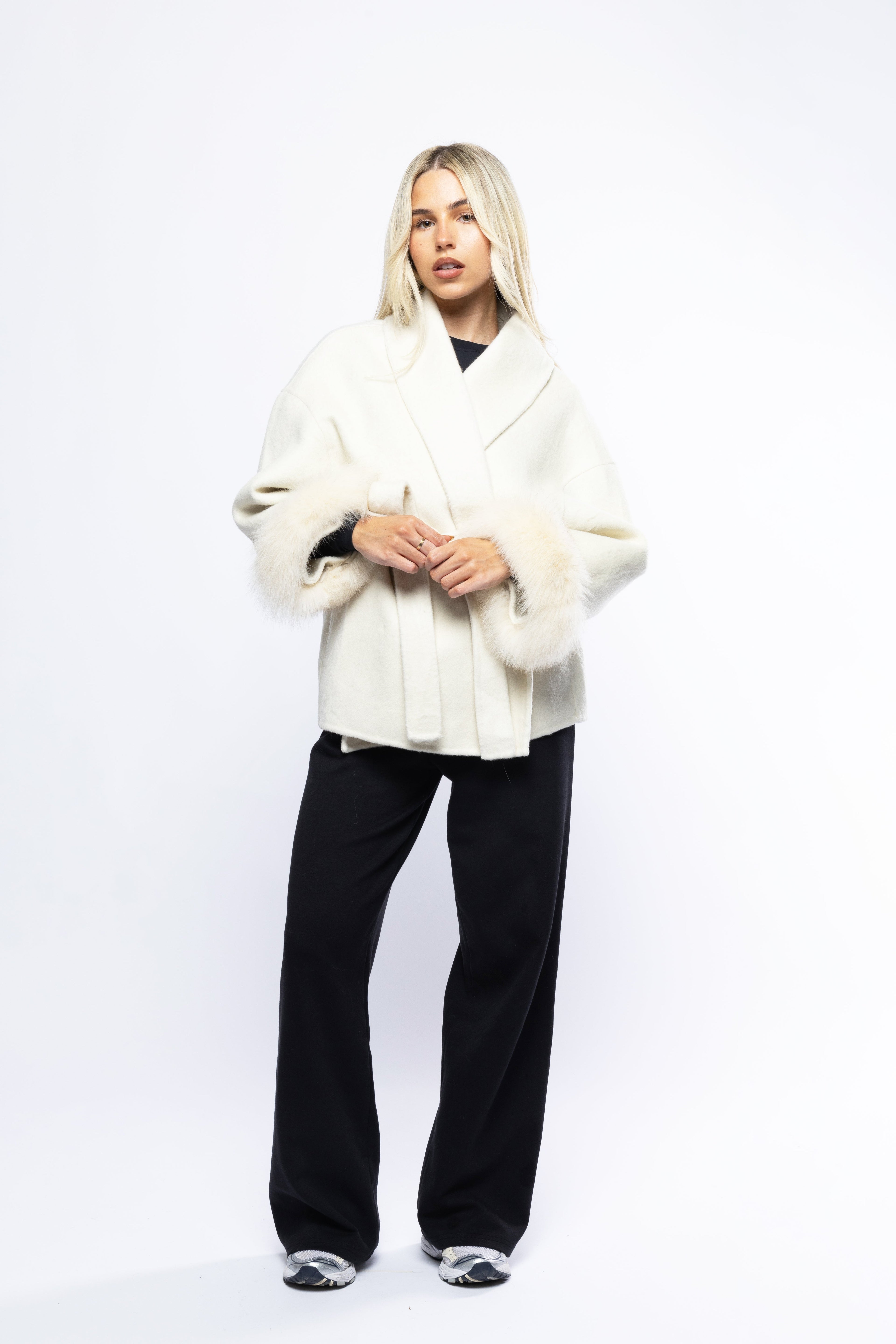 Crafted from a refined wool blend, it combines comfort, elegance, and versatility. The front zipper closure and detachable hood allow you to style it in multiple ways, adapting effortlessly to any occasion. Whether layered for warmth or worn casually, this piece ensures timeless sophistication.