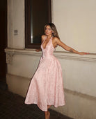 Embrace effortless elegance with the Esmeralda Halter Sleeveless Midi Dress, designed for both sophistication and comfort. Featuring a flattering halter V-neckline and a beautifully textured finish, this dress offers a timeless silhouette. Whether you're attending a special occasion or a chic daytime event, the Esmeralda dress is the perfect choice.