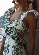 Embrace effortless elegance with the Haven Ruffled Maxi Dress, a timeless piece designed to capture the essence of summer. With its flowing silhouette, delicate ruffled trims, and a flattering open-back design, this dress is perfect for special occasions or a dreamy holiday escape. Whether strolling through sunlit streets or attending an elegant soirée, this maxi dress ensures you make a statement.
