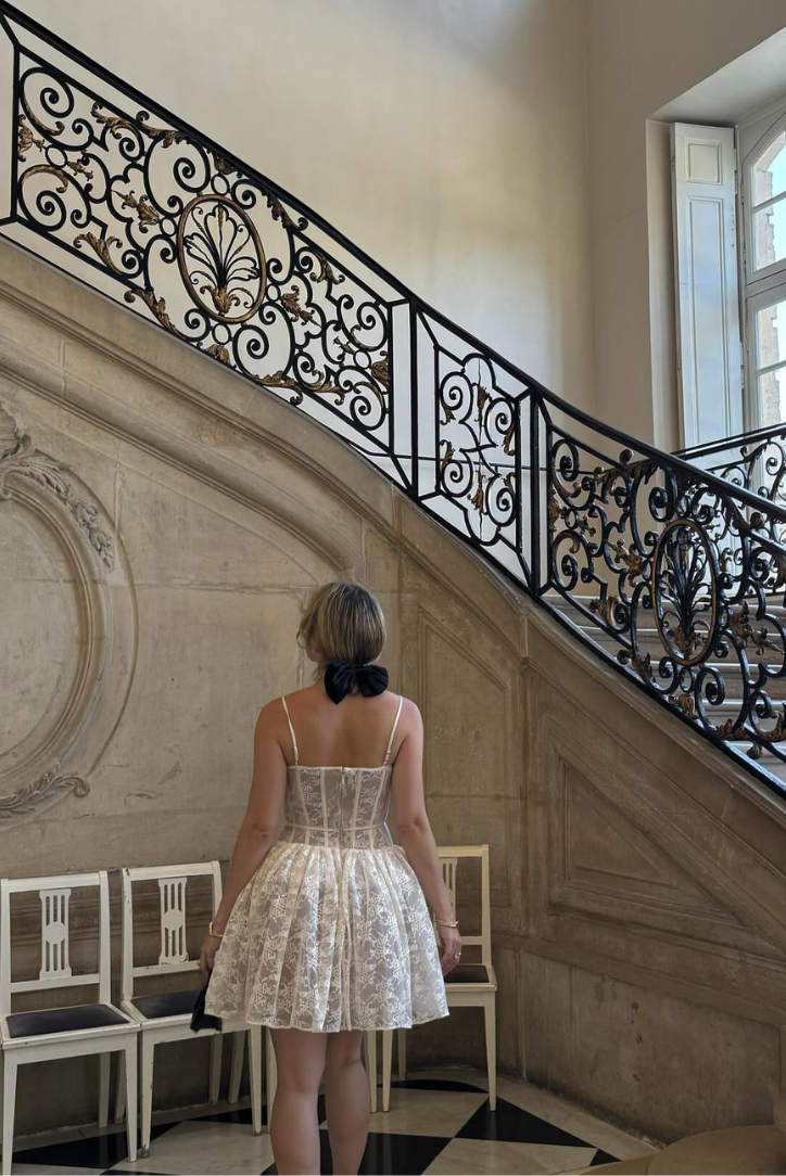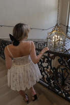 Step into elegance with the Indigo Lace Mini Dress, a beautifully crafted piece designed to make a statement at any occasion. Featuring a structured bodice with supportive underwired cups and delicate lace detailing, this dress flatters the figure while exuding timeless sophistication. The charming bow at the centre adds a touch of femininity, completing the look with effortless grace.