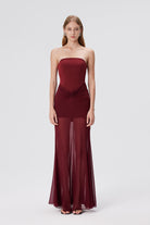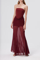 Make a bold, graceful statement in the Seraphina Gown. Designed with a sculpted, corset-inspired fit that accentuates the hips, this strapless masterpiece flows into a dramatic fishtail silhouette. Crafted from airy, luxurious Naia™ Acetate mesh, it combines high-impact elegance with conscious craftsmanship. A striking choice for formal occasions, the Seraphina merges sustainable fashion with unforgettable style.