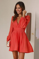 Elevate your wardrobe with the Serena Deep V Long Sleeve Dress, a refined statement piece designed to exude elegance and confidence. Featuring a bold plunging V-neckline secured with dual hook-and-eye closures at the bust, this dress combines allure with structure.