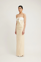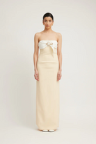 A striking maxi dress designed for modern elegance, the Kasai Dress in Lemon/Ivory is crafted from a structured bonded woven fabrication. Featuring a strapless neckline with a contrasting ivory panel along the top, it’s elevated by an adjustable Signature Tojha buckle for a refined touch. Thoughtful details like non-slip gel tape, princess seam darts for a flattering fit, and a functional side seam zip ensure both style and comfort. Fully lined for a seamless finish, this dress is perfect for sophisticated occasions.