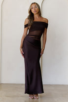 Veiled Whispers Off Shoulder Maxi Dress Brown